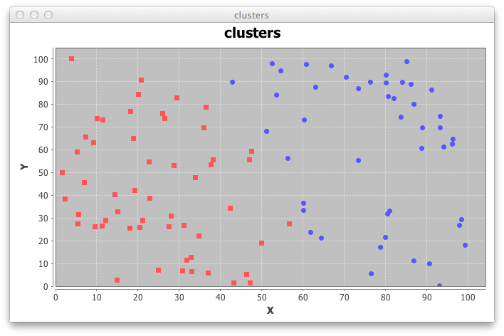 The complete source code kmeans.groovy uses JFreeChart for displaying the input and the output.
